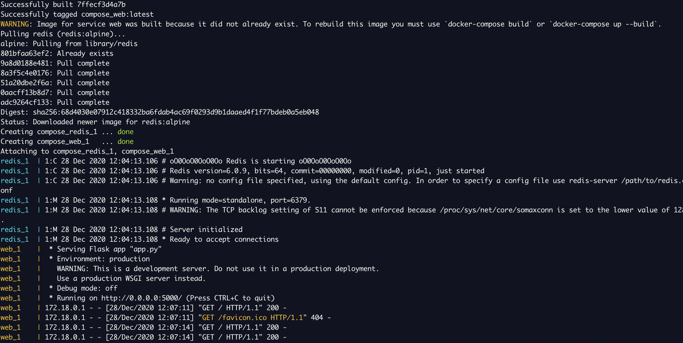 3. Run docker-compose up and Compose starts and runs your entire app.