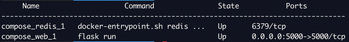 그리고 아래처럼 상태 확인까지 하면...docker-componse를 통해 redis와 web 컨테이너가 실행된 것을 알 수 있다.